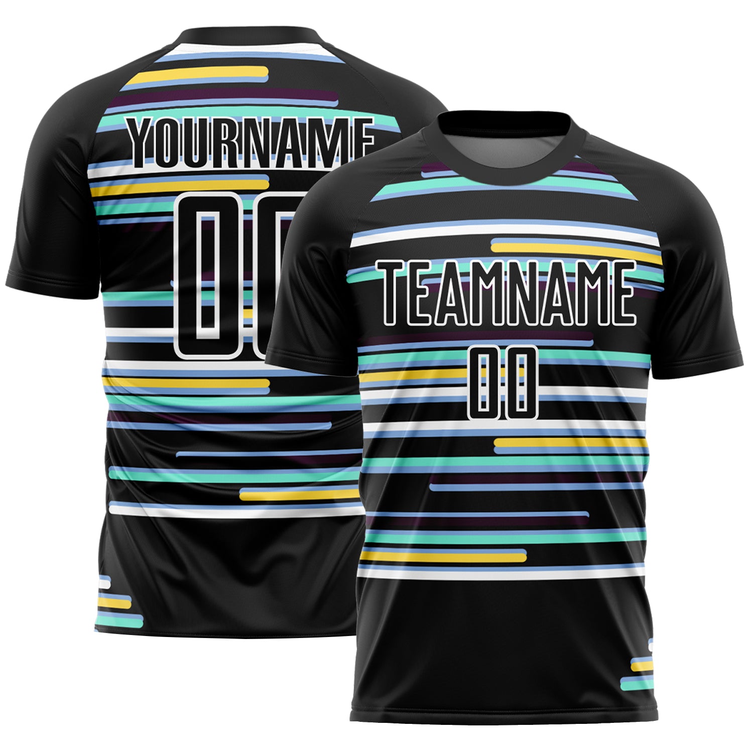Personalized Soccer Jersey, Black White Lines Design, Youth Uniform for Teams Personalized Black White Lines Sublimation