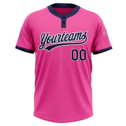 Custom Softball Jersey – Unisex Two-Button Design in Pink, Navy & White Custom Pink Navy-White Two-Button Unisex Softball