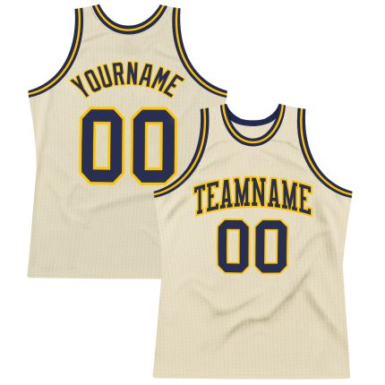 Custom Navy Gold Basketball Jersey – Authentic Throwback Design, Cream Color Custom Cream Navy-Gold Authentic Throwback Basketball