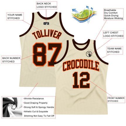 Custom Brown Orange Throwback Basketball Jersey – Authentic Basketball Apparel Custom Cream Brown-Orange Authentic Throwback