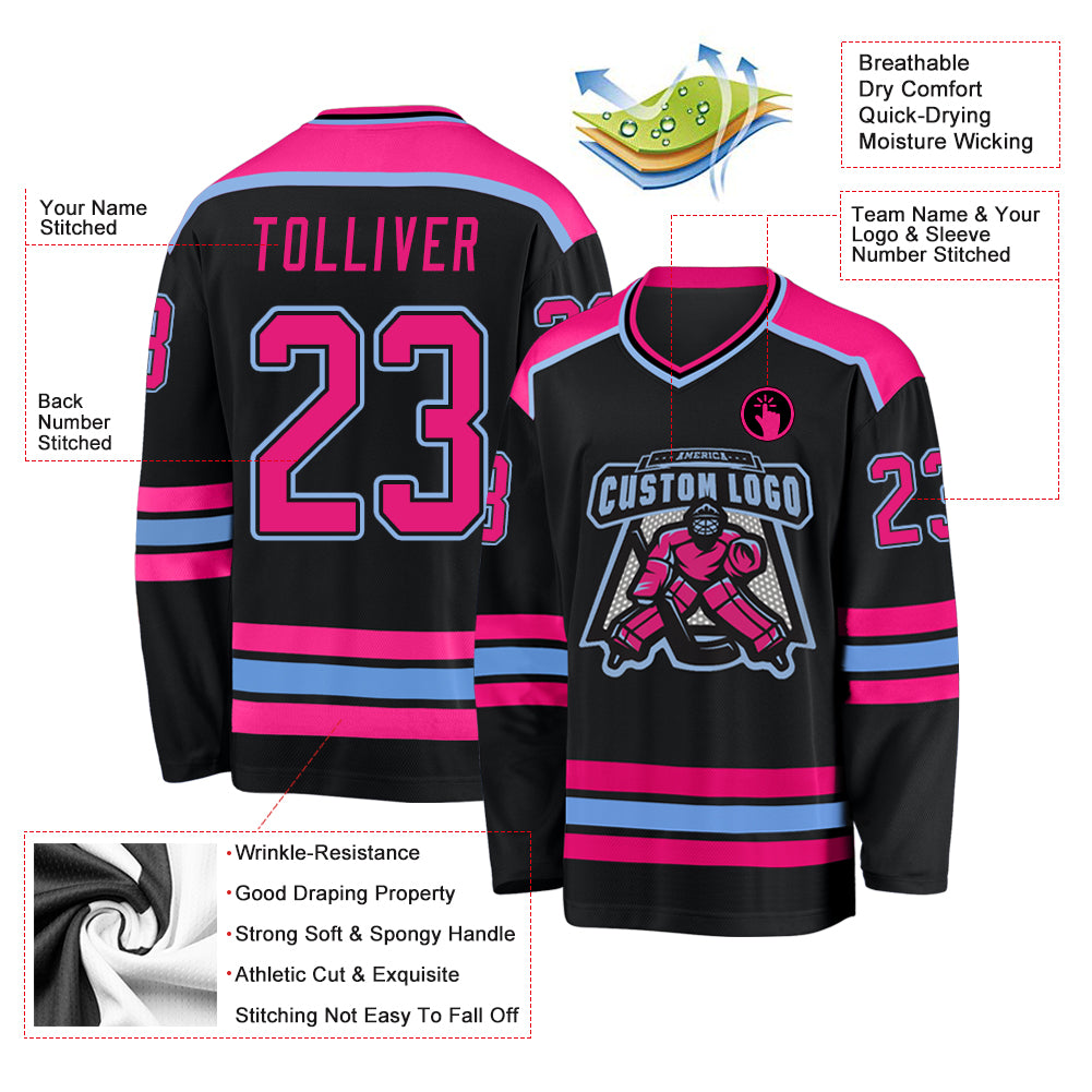 Custom Black Hockey Jersey with Hot Pink and Light Blue Accents – Personalized Team Apparel Custom Black Hot Pink-Light Blue
