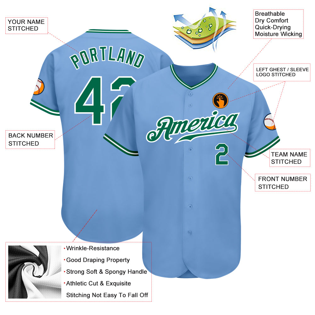 Custom Light Blue Kelly Green-White Authentic Baseball Jersey Style 9853