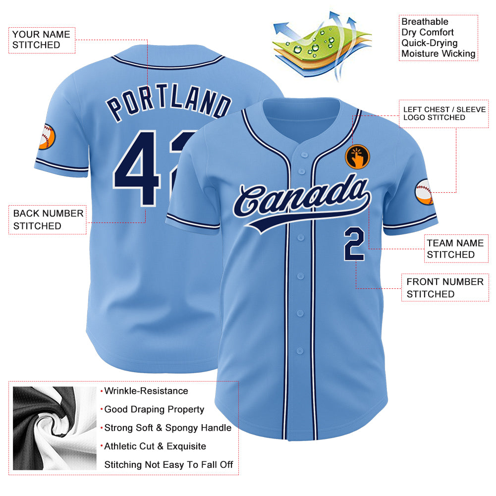 Light Blue Navy White Authentic Baseball Jersey – Custom Made Sportswear Custom Light Blue Navy-White Authentic Baseball