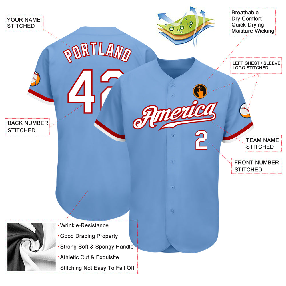 Light Blue White Red Custom Authentic Baseball Jersey for Men Custom Light Blue White-Red Authentic Baseball Jersey