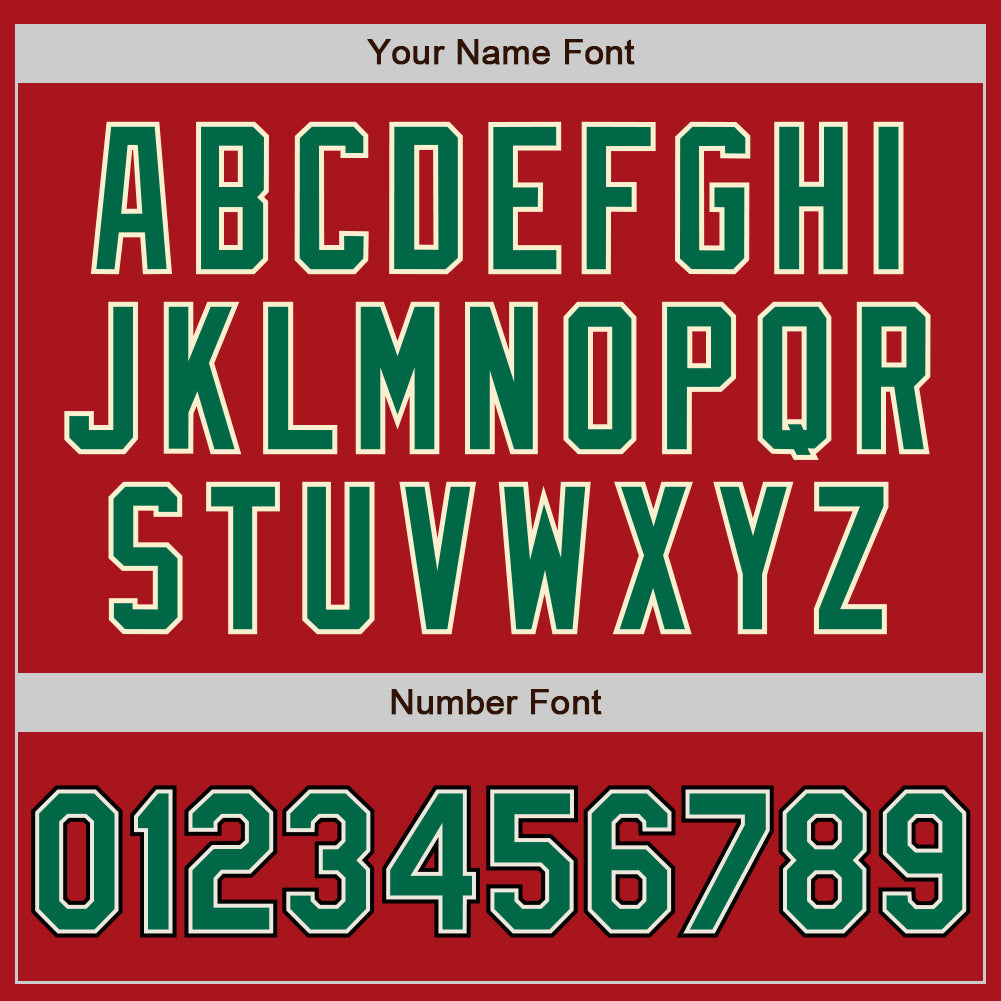 Custom Red Kelly Green Cream Black Varsity Letterman Bomber Jacket Full-Snap Custom Red Kelly Green Cream-Black Bomber Full-Snap