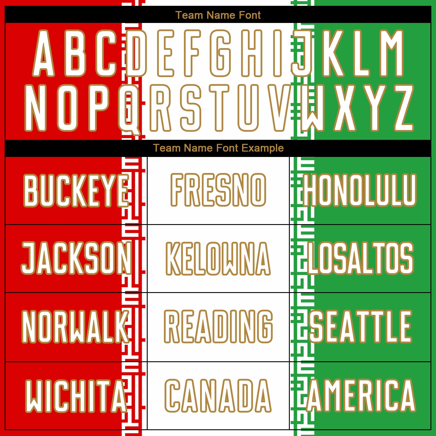 Iranian Flag Soccer Jersey – Custom Red White Kelly Green Old Gold Sublimation Uniform Custom Red White Kelly Green-Old Gold