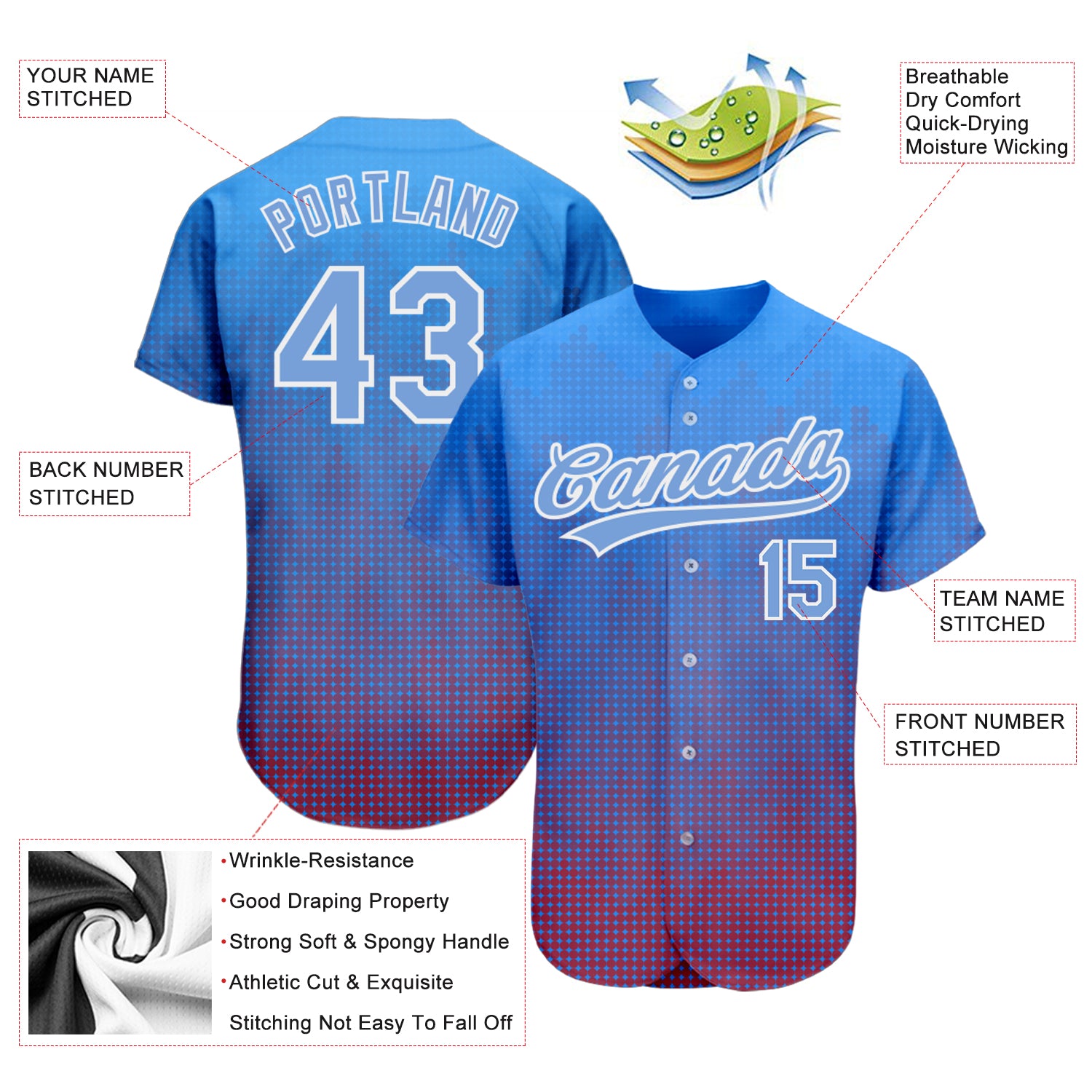 Light Blue Red 3D Pattern Authentic Baseball Jersey – Custom Design Custom Royal Light Blue-Red 3D Pattern Design Authentic