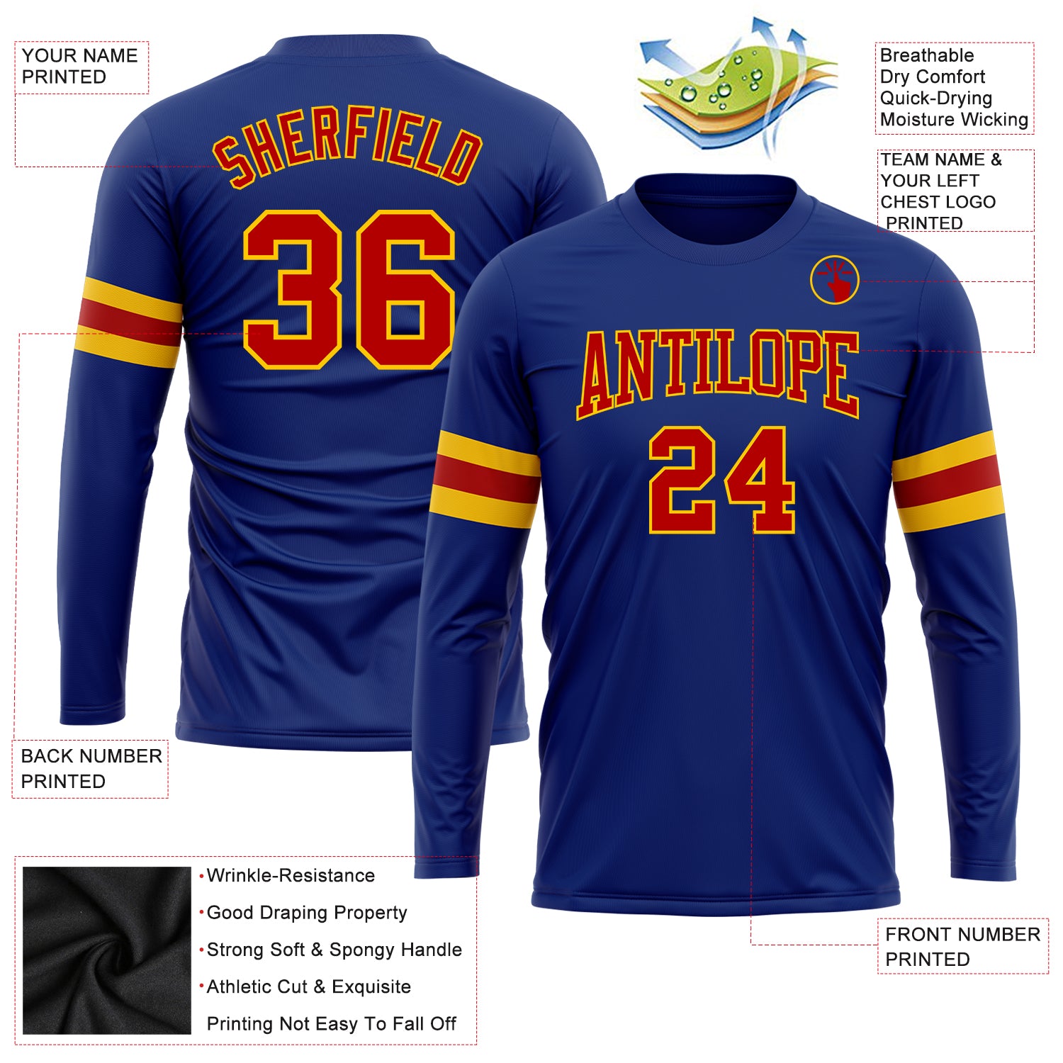Custom Red-Gold Long Sleeve Performance T-Shirt for Men and Women Custom Royal Red-Gold Long Sleeve Performance T-Shirt