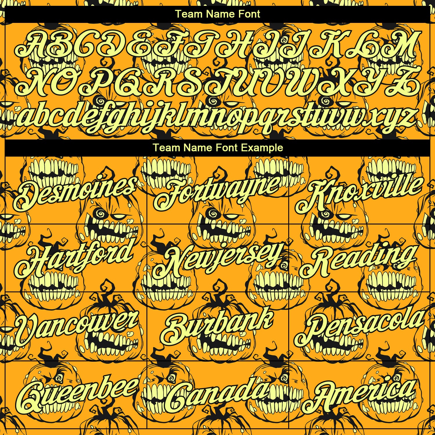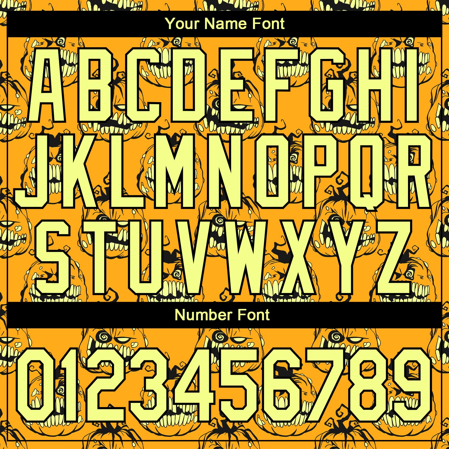 Gold Black 3D Pattern Smiling Pumpkin Halloween Hoodie Custom Stitched Pullover Sweatshirt Custom Stitched Gold Gold-Black