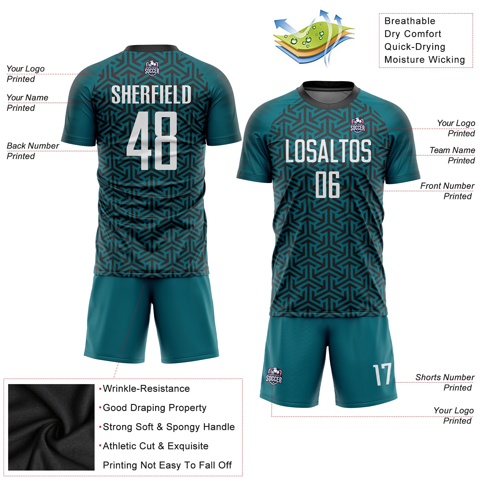 Teal Black White Custom Soccer Uniform Jersey Sublimation Design for Teams Custom Teal White-Black Sublimation Soccer Uniform