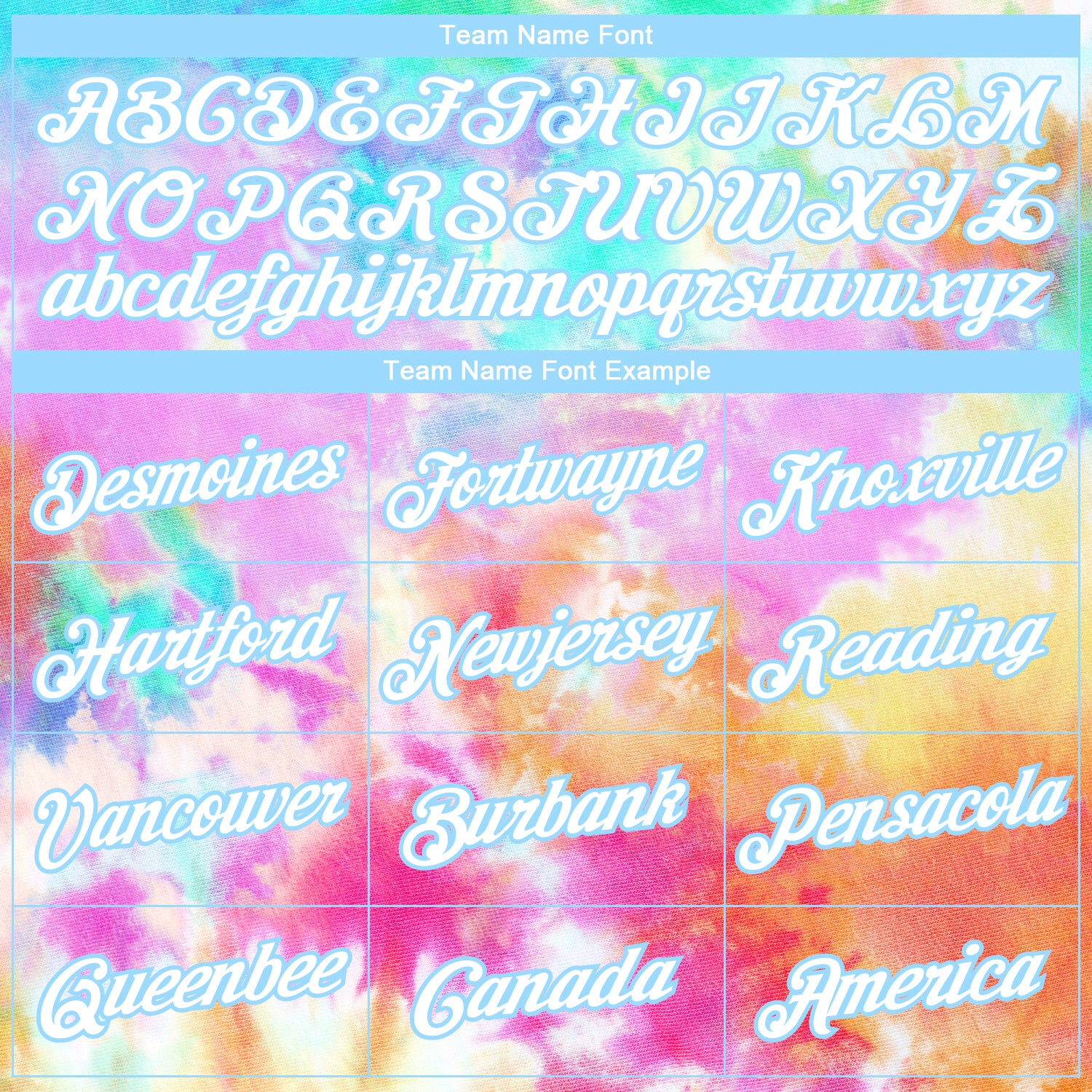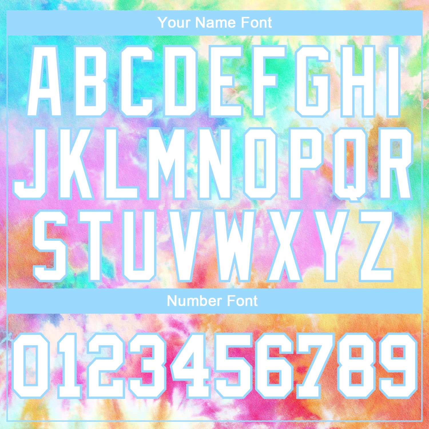 Custom Tie Dye Performance T-Shirt White-Light Blue Rainbow 3D Long Sleeve Style 3893 Custom Tie Dye White-Light Blue Rainbow