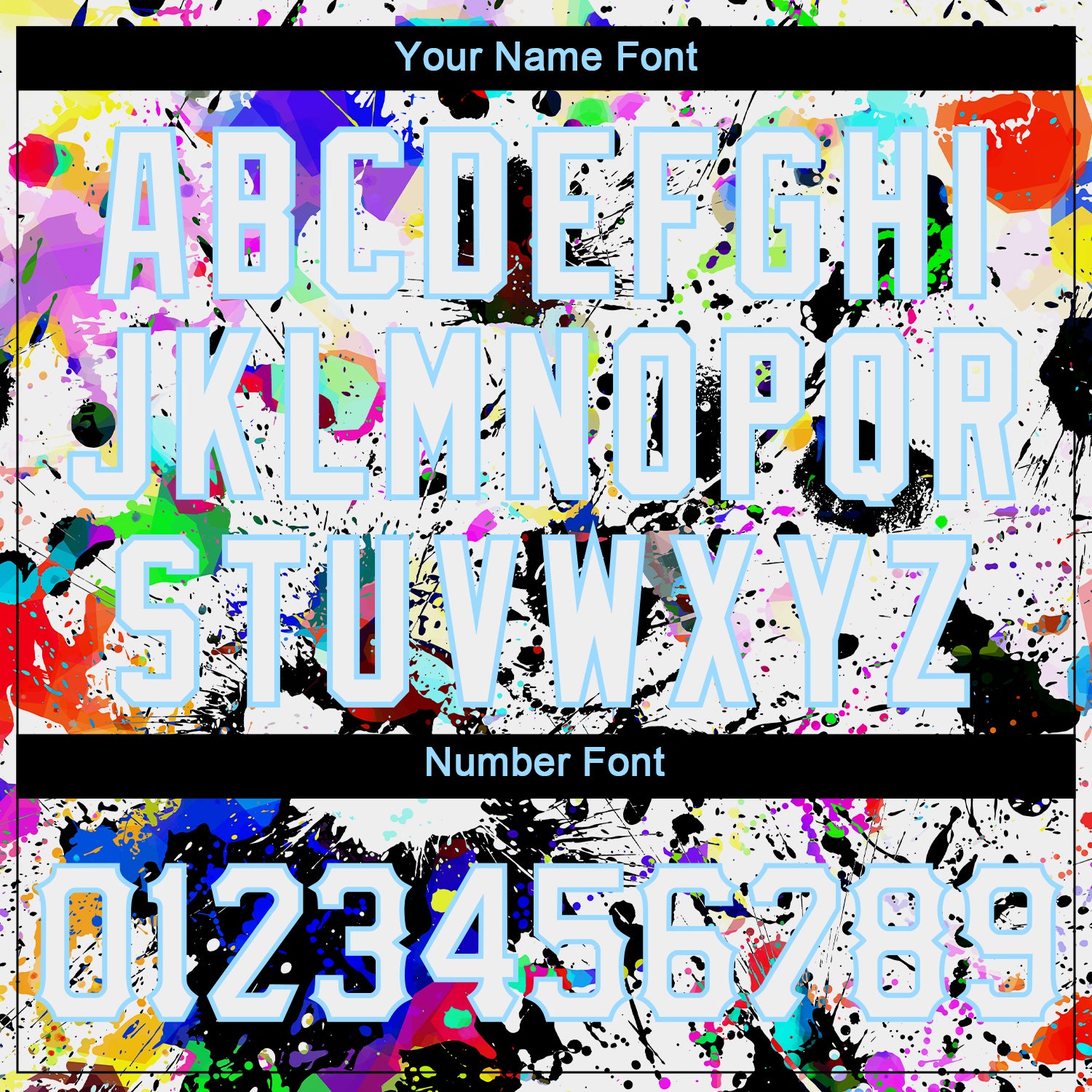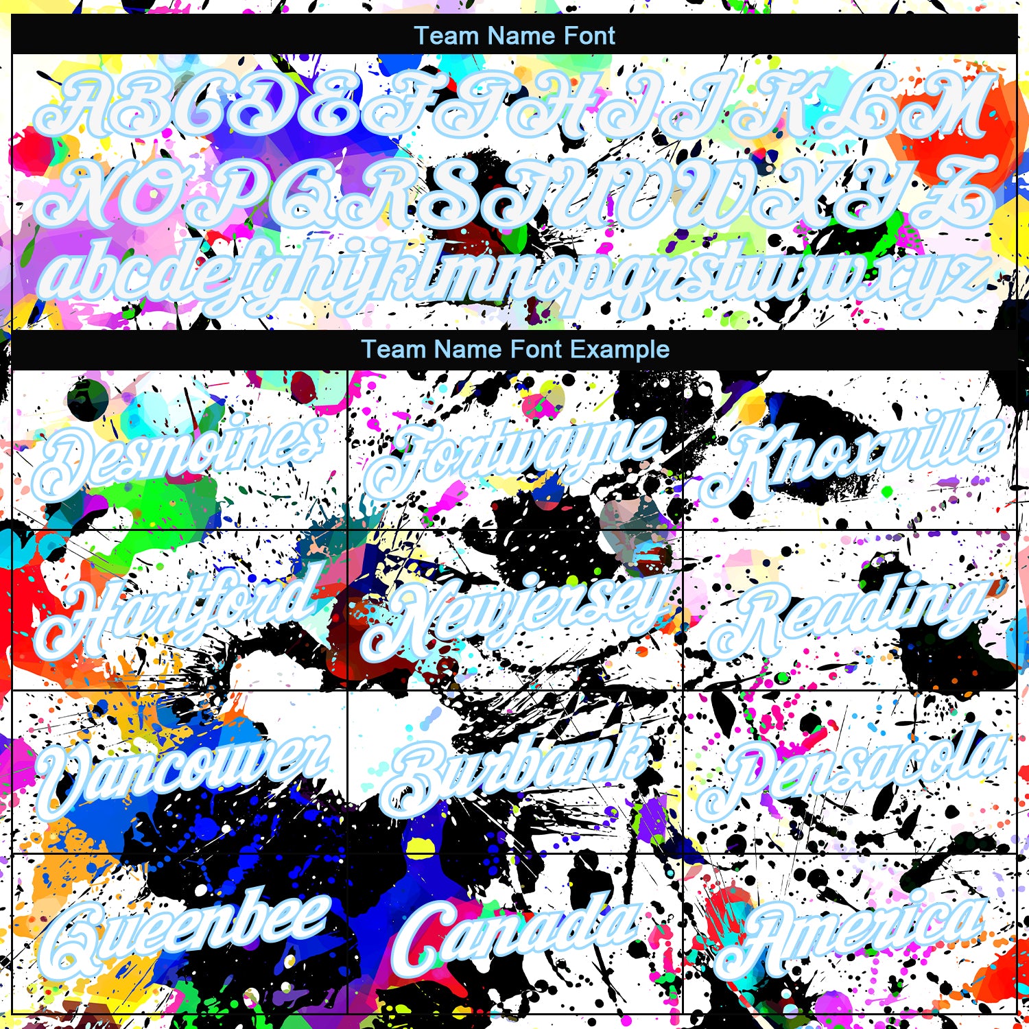 Custom Womens 3D V-Neck Baseball Jersey with Graffiti Pattern & Light Blue Splashes, Style 6174 Custom Women’s Graffiti Pattern