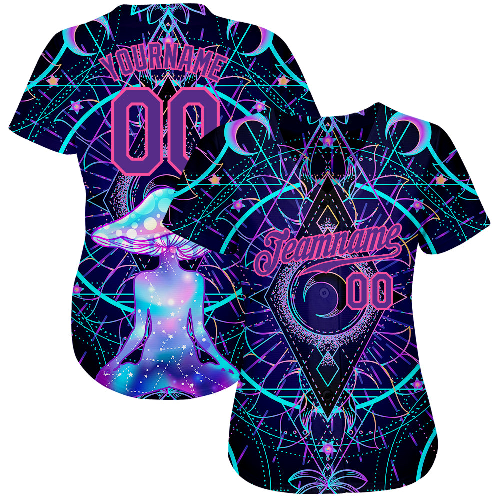 Personalized 3D Magic Mushrooms Over Sacred Geometry Psychedelic Hallucination Baseball Jersey 3