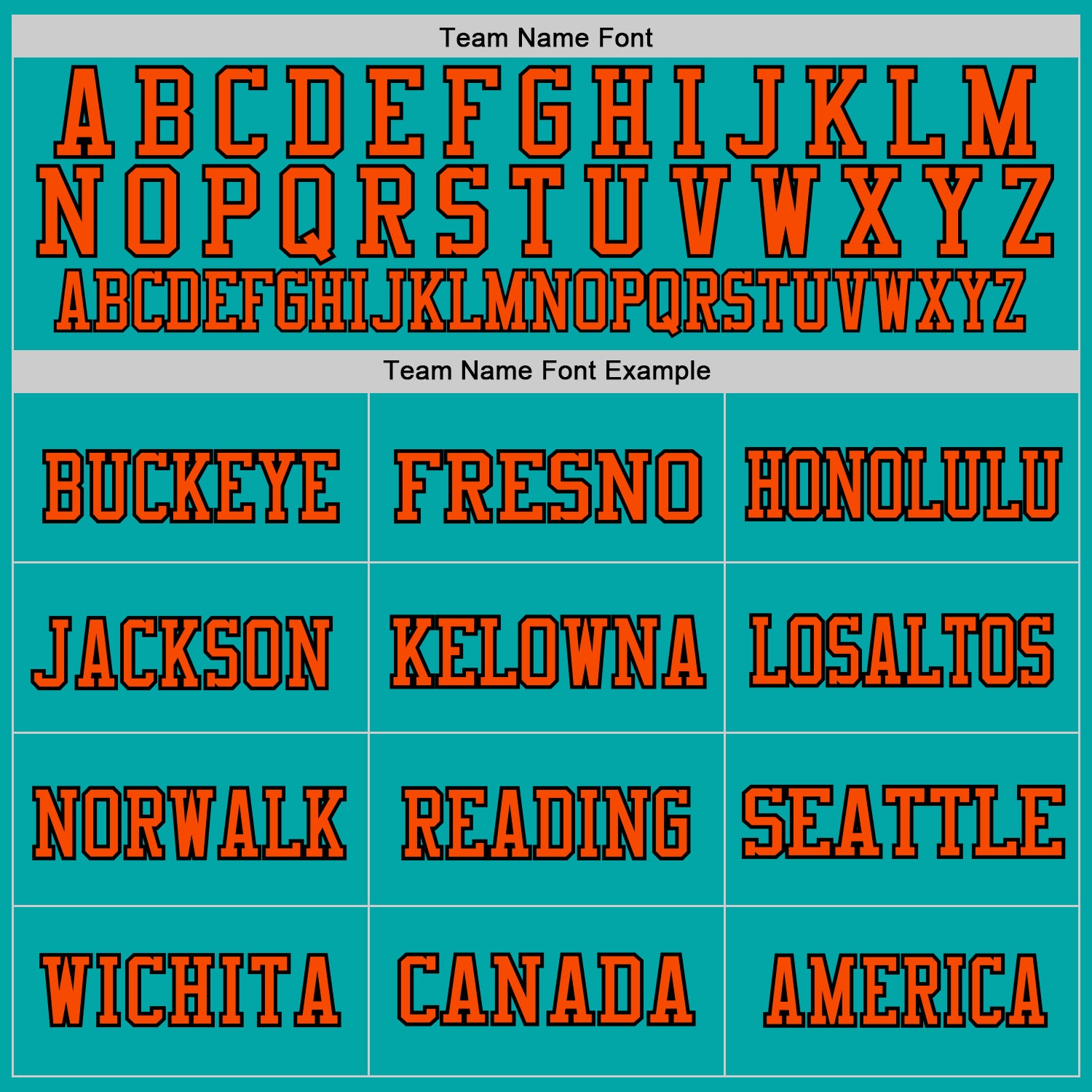 Custom Name and Number Authentic Football Jersey – Personalized Aqua Orange-Black Mesh Design Personalized Aqua Orange-Black