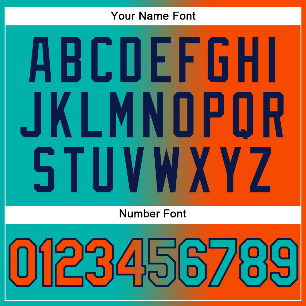 Custom Name & Number Personalized Aqua Orange-Navy Gradient Unisex Softball Jersey – Fashion Two-Button Design Personalized