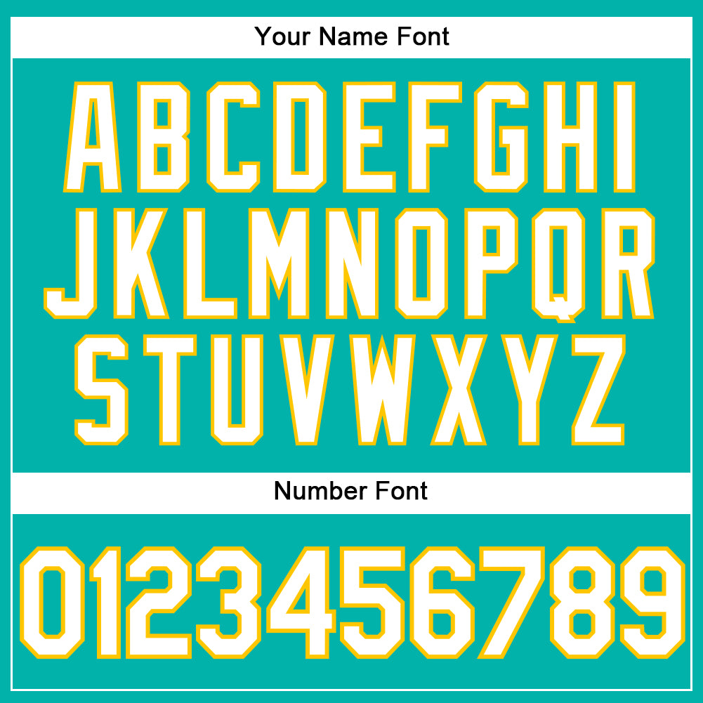 Personalized Aqua White Pinstripe Baseball Jersey – White and Yellow Design Personalized Aqua White Pinstripe White-Yellow