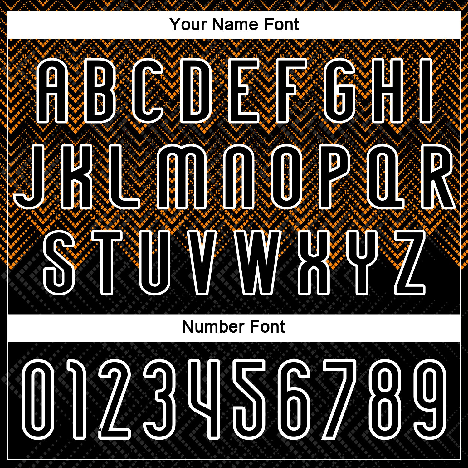 Custom Name and Number Personalized Volleyball Jersey – Black Bay Orange-White Geometric Shape Team Uniform Personalized