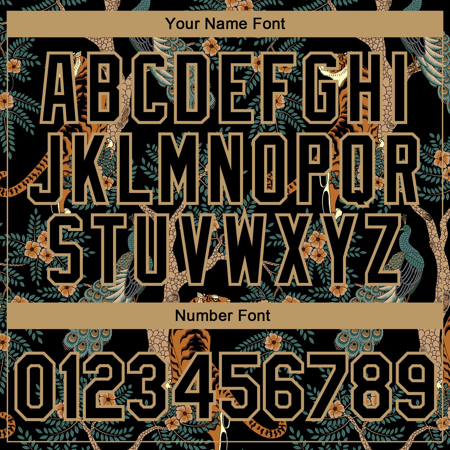 Personalized Black Black-Old Gold 3D Tiger And Peacock Performance Vapor Golf Polo Shirt