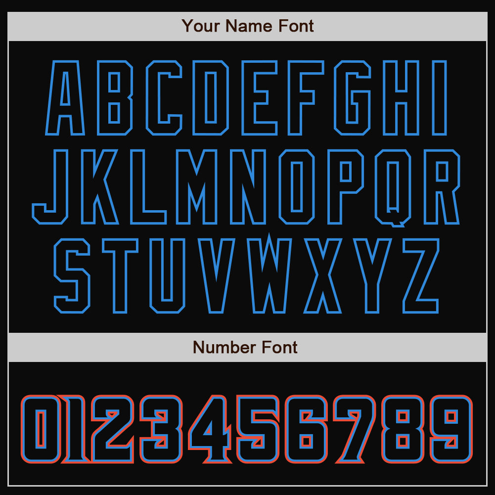 Personalized Black Blue-Orange Bomber Varsity Letterman Jacket – Full-Snap Design Personalized Black Black Powder Blue-Orange