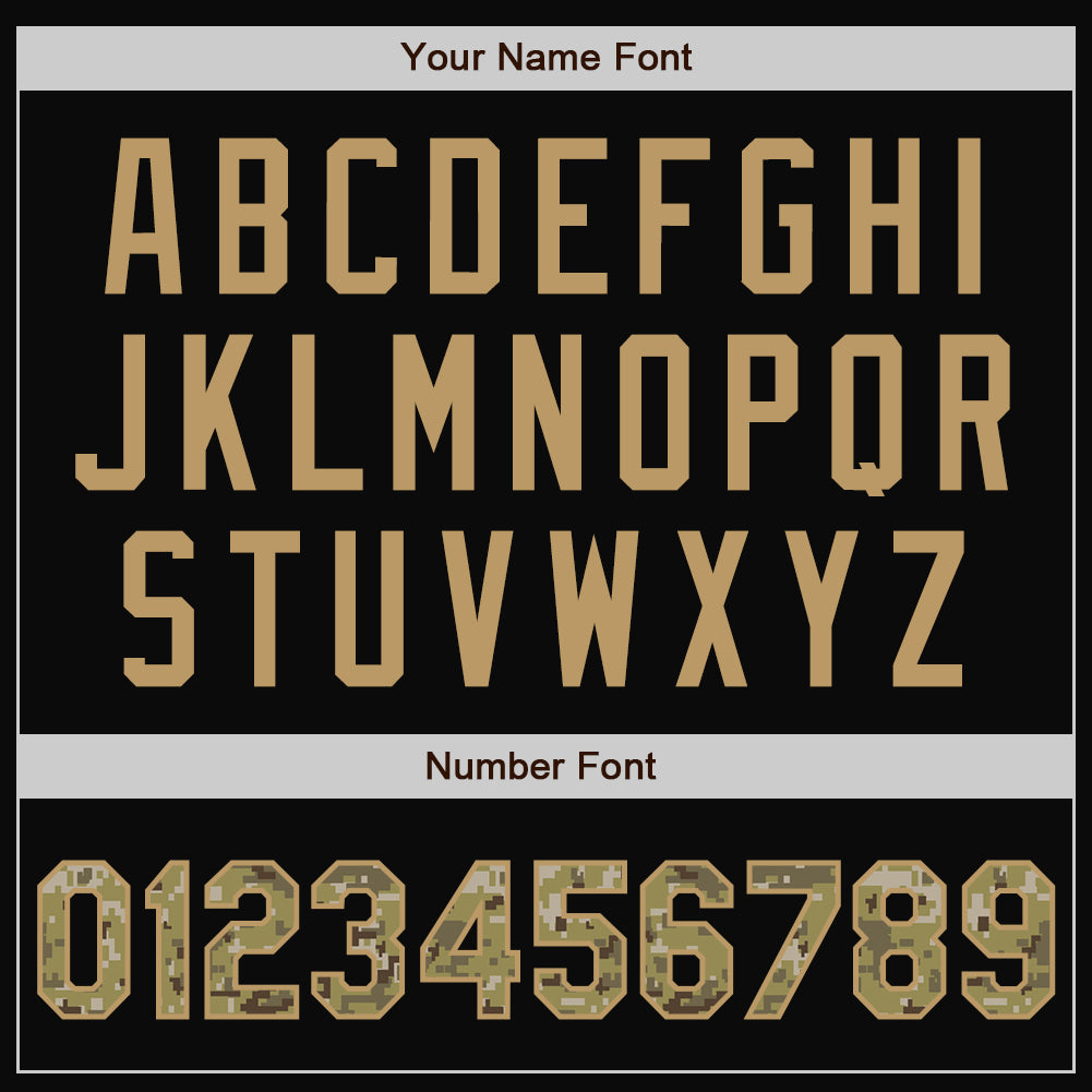 Personalized Black Camo-Old Gold Bomber Full-Snap Varsity Letterman Jacket