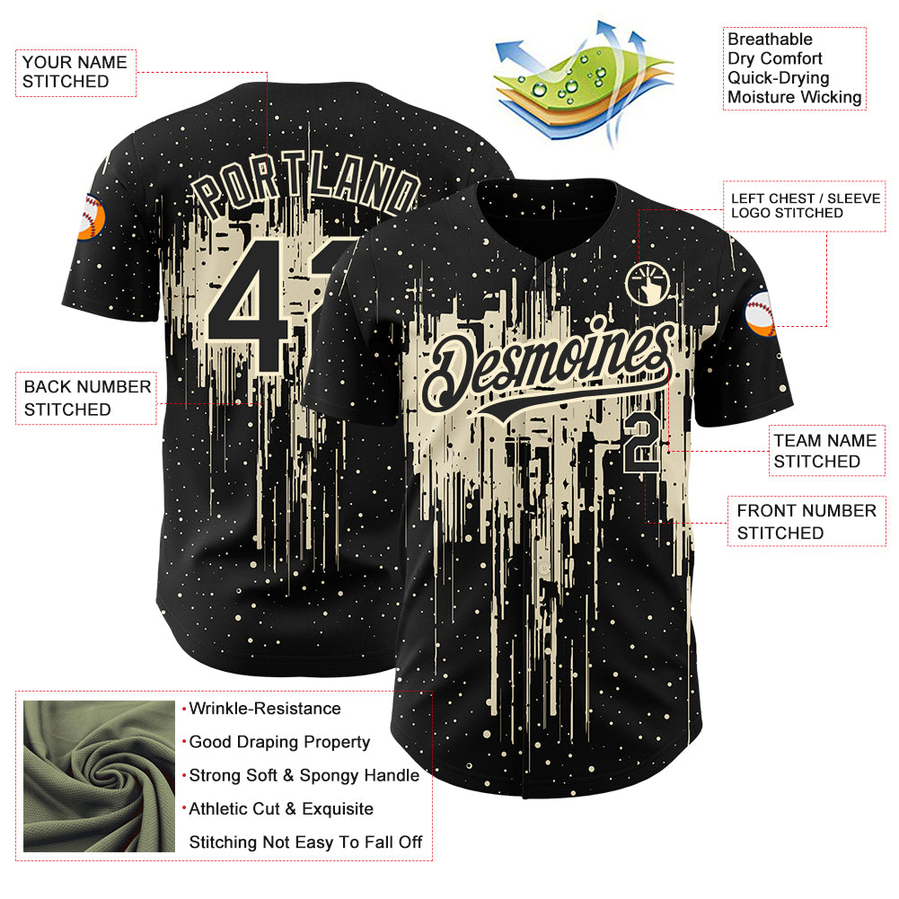 Personalized Black Cream 3D Dripping Splatter Art Baseball Jersey