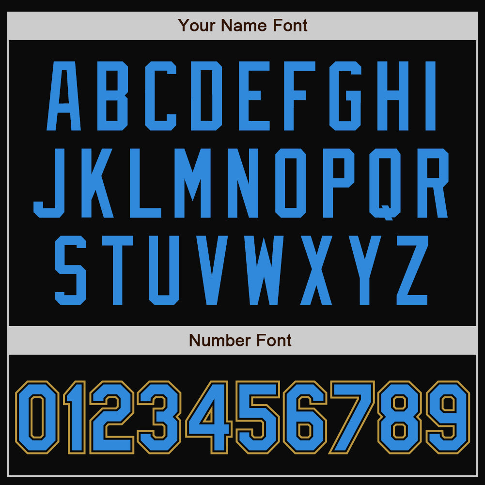 Custom Name & Number Black Electric Blue Gold Varsity Bomber Full-Snap Two Tone Jacket for Teams Personalized Black Electric