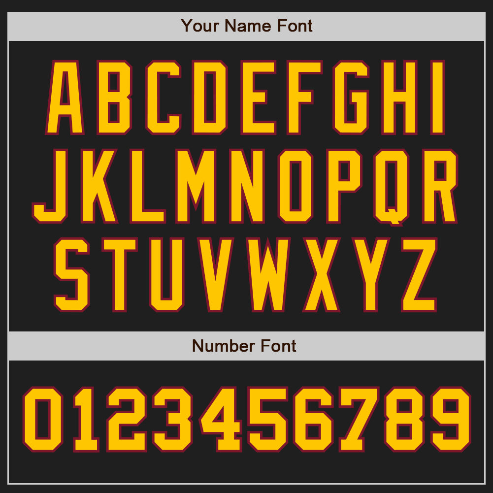 Custom Two Tone Baseball Jersey with Personalized Name & Number – Black Gold-Crimson Authentic Team Apparel Personalized