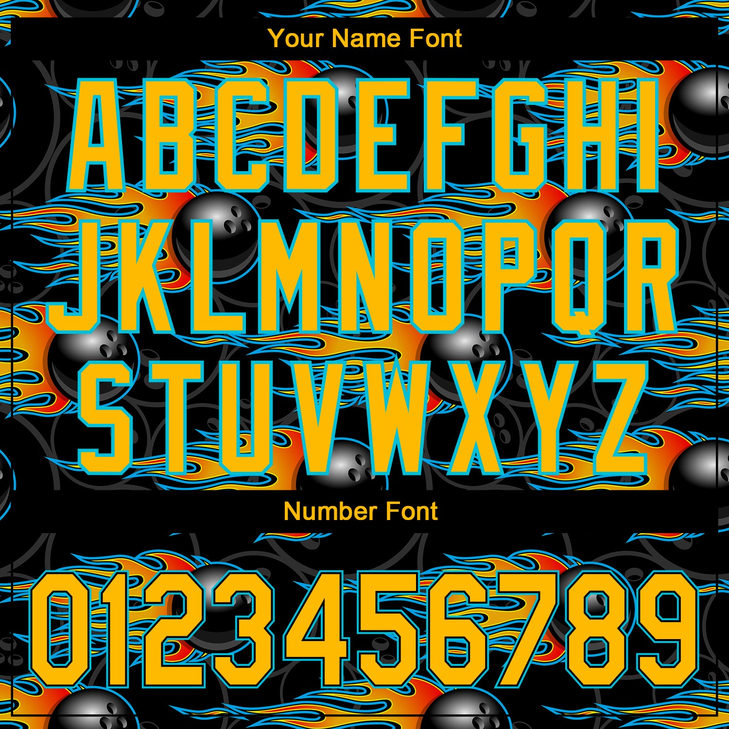 Personalized 3D Black Gold-Lakes Blue Bowling Ball Hotrod Flame Jersey Baseball Personalized Black Gold-Lakes Blue 3D Bowling