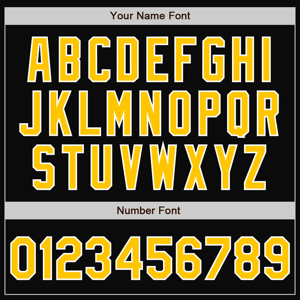 Personalized Black Gold-White Bomber Full-Snap Varsity Letterman Jacket Team Custom Name and Number