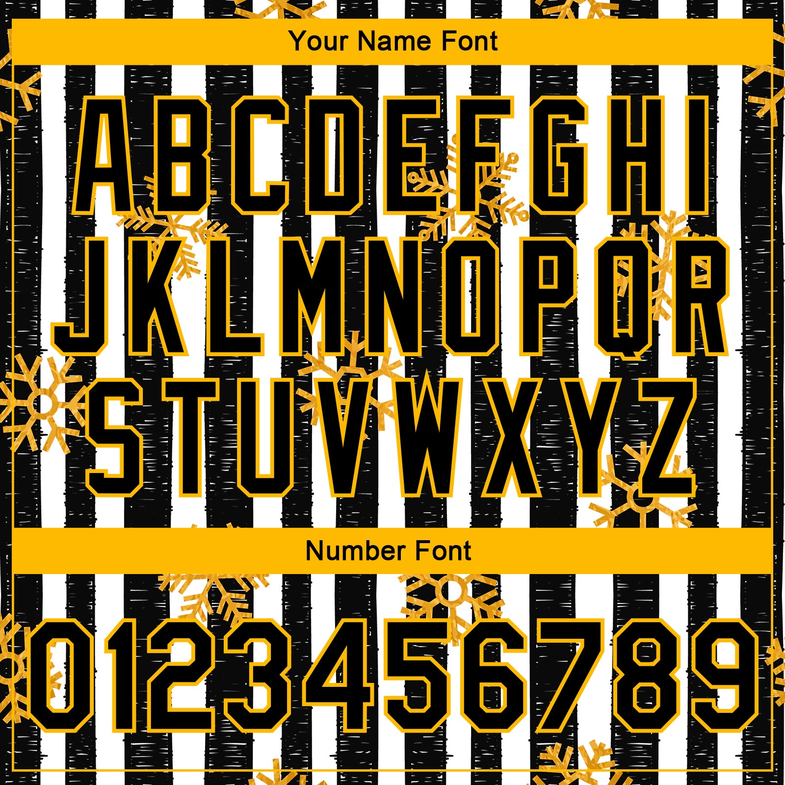 Personalized Black Gold White Christmas Snowflakes 3D Bomber Varsity Letterman Jacket Personalized Black Gold-White Christmas