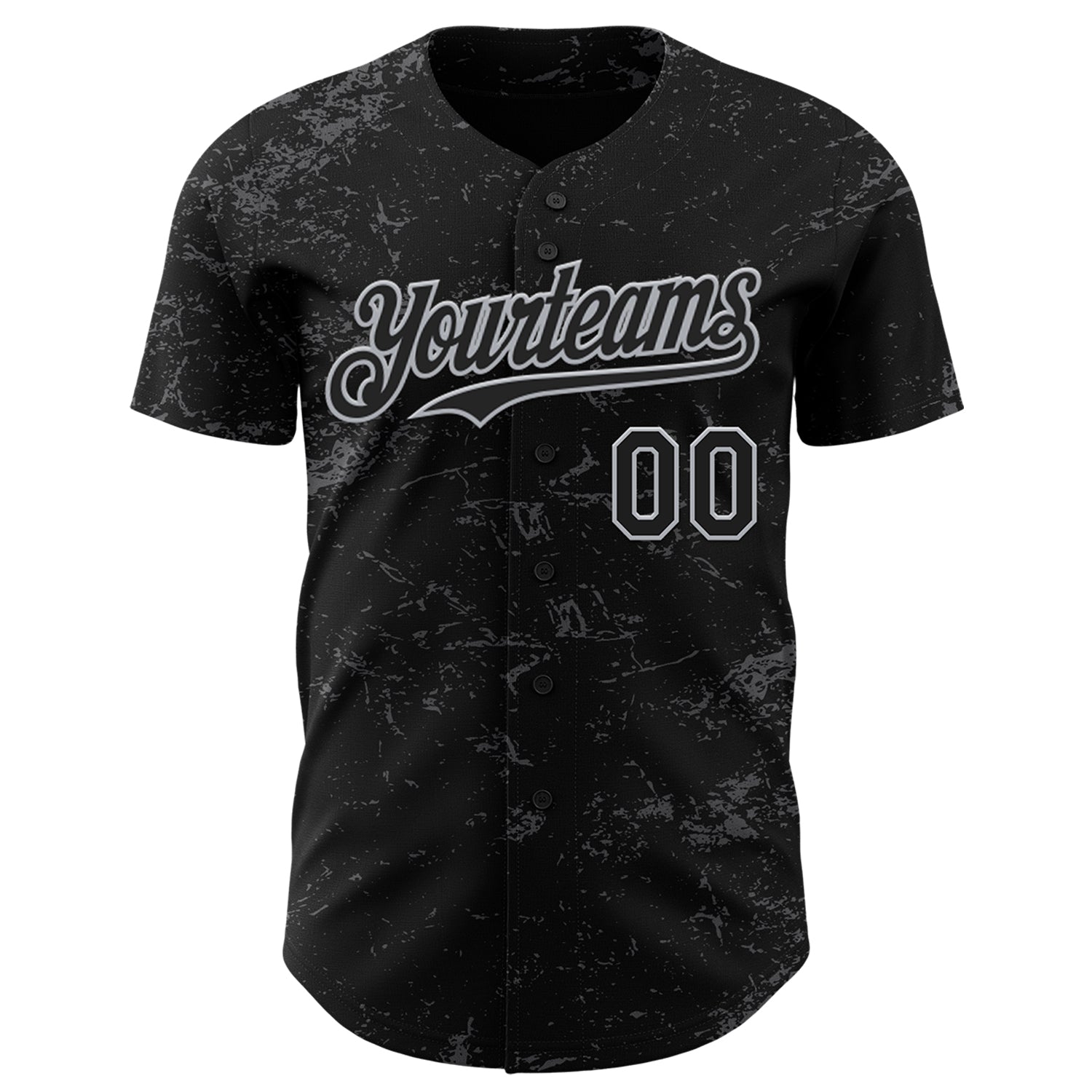 Personalized Black Gray-Steel Gray 3D Abstract Splatter Texture Baseball Jersey