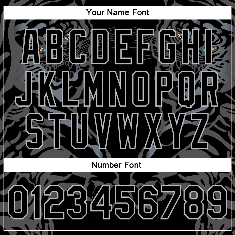 Custom Name and Number Black Gray Tiger 3D Varsity Letterman Bomber Jacket Personalized Black Gray Tiger 3D Pattern Design
