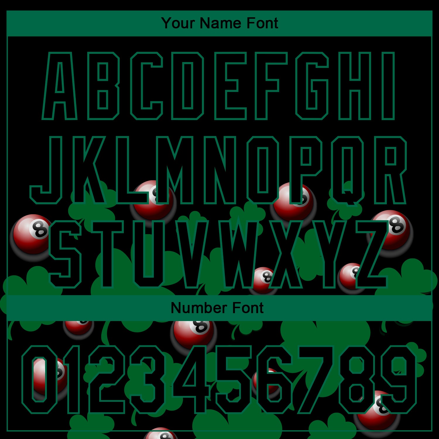 Custom St. Patricks Day Black Green 3D Clovers Billiards Balls Baseball Jersey Personalized Black Green 3D Clovers And Billiards