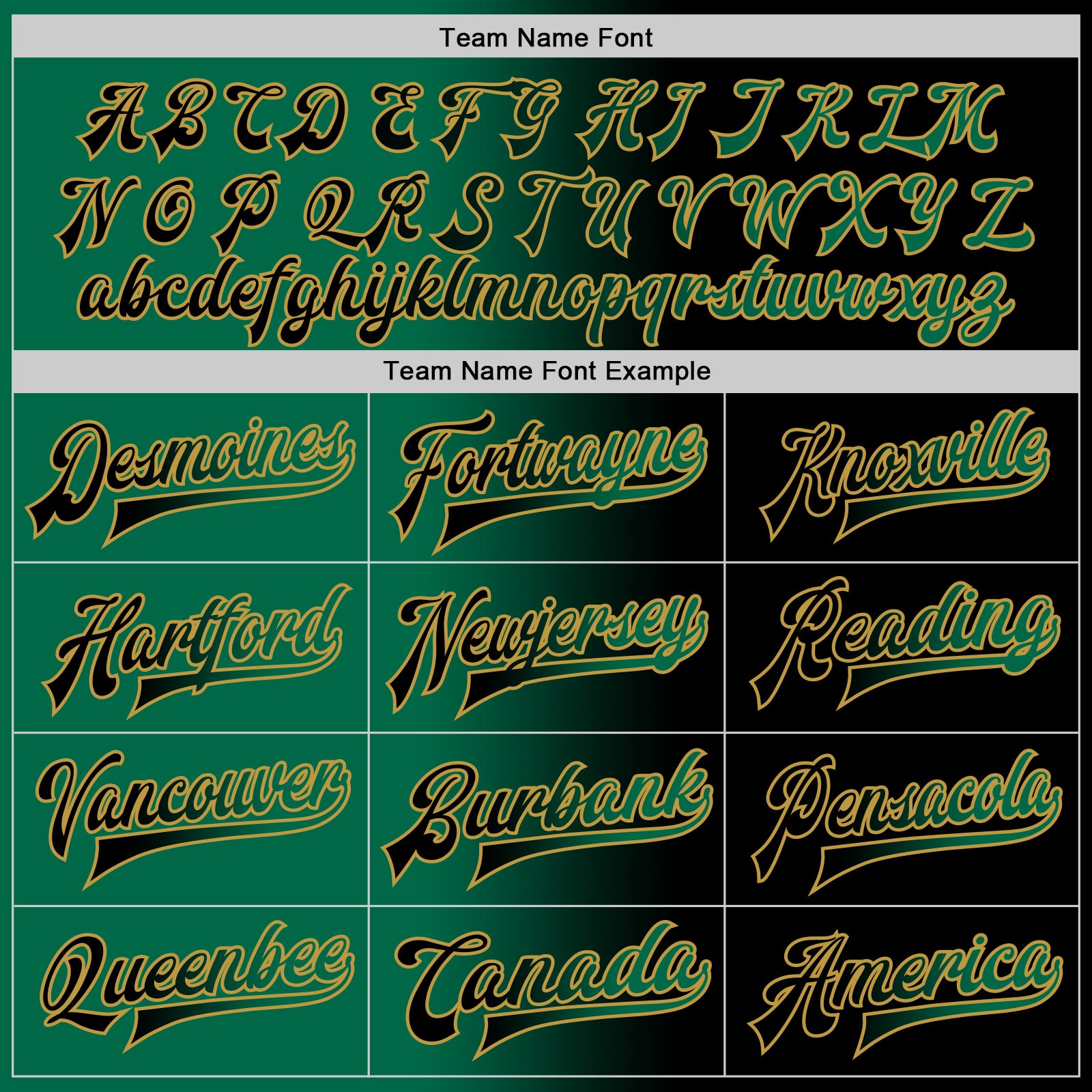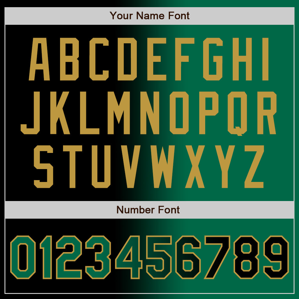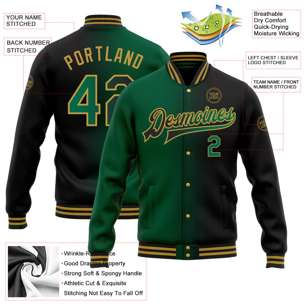 Personalized Gradient Varsity Letterman Jacket – Black Kelly Green Old Gold Bomber Full-Snap Personalized Black Kelly Green-Old