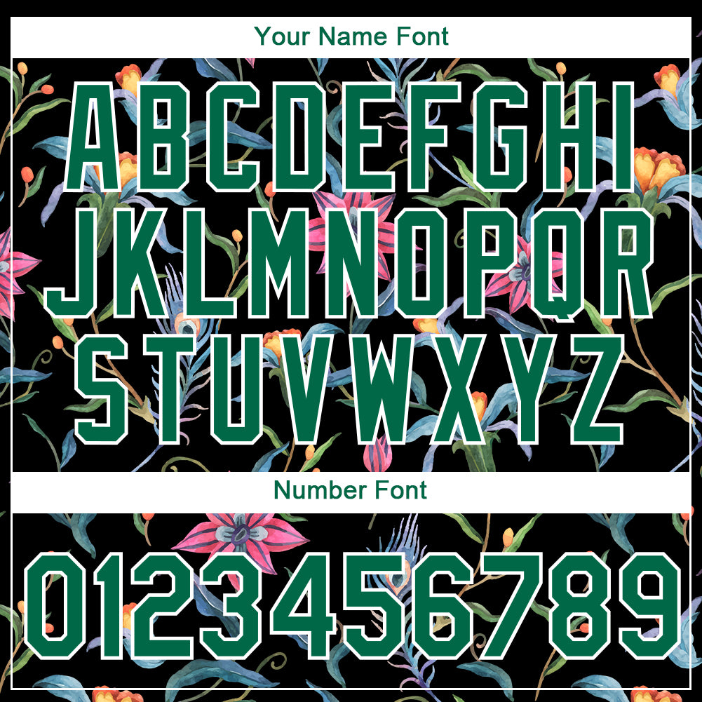 Personalized Black Kelly Green-White 3D Pattern Design Flowers Performance T-Shirt Team Custom Name and Number