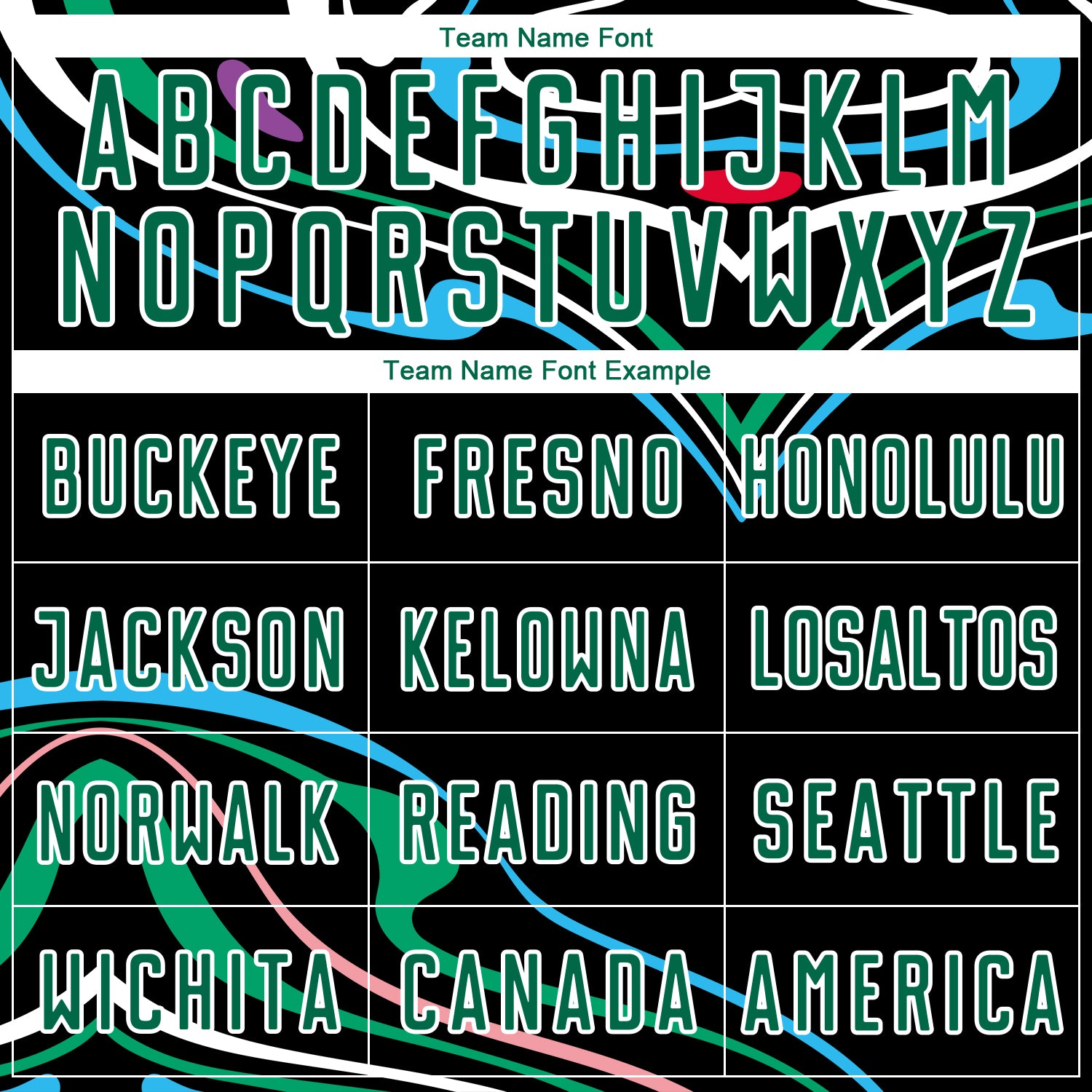 Personalized Soccer Jersey – Black Green White Fluid Shapes Sublimation Uniform Personalized Black Kelly Green-White Fluid