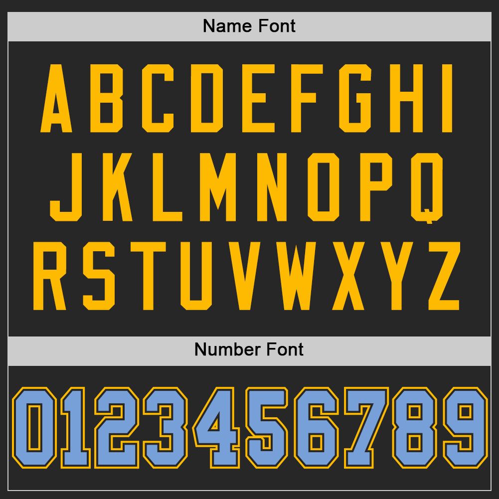 Custom Personalized Black Light Blue-Gold Mesh Football Jersey with Name and Number – Authentic Throwback Design Personalized
