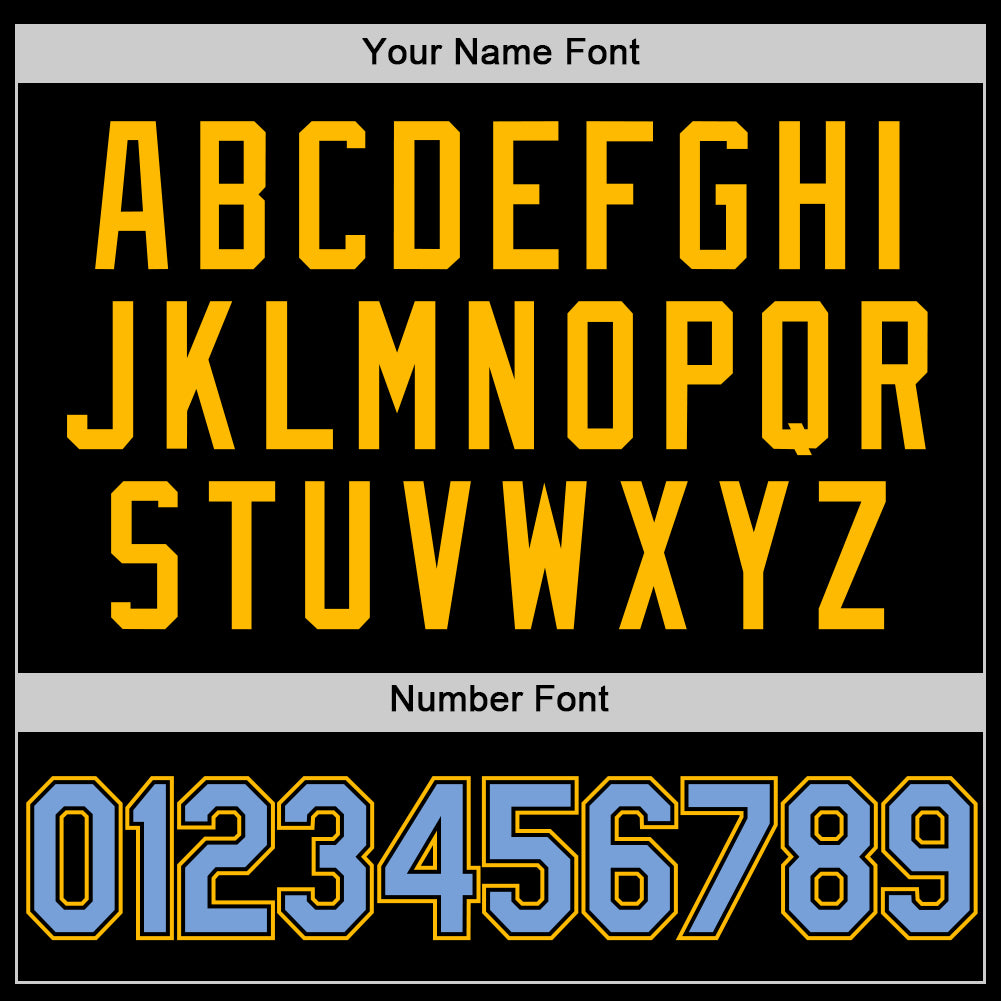 Personalized Baseball Jersey – Black Light Blue Gold Throwback Design Personalized Black Light Blue-Gold Throwback Baseball