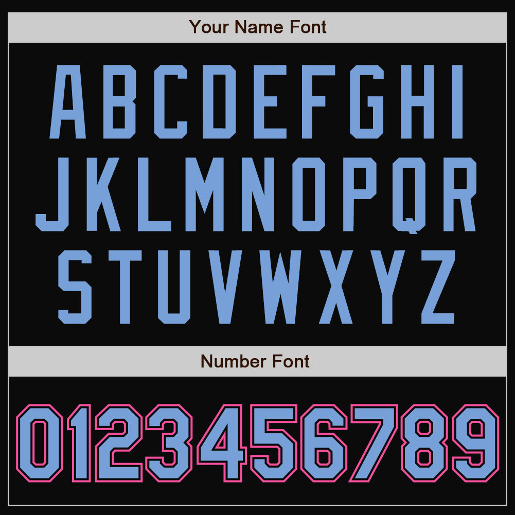 Custom Name and Number Bomber Varsity Jacket Two Tone Black Light Blue-Pink Full-Snap Personalized Black Light Blue-Pink