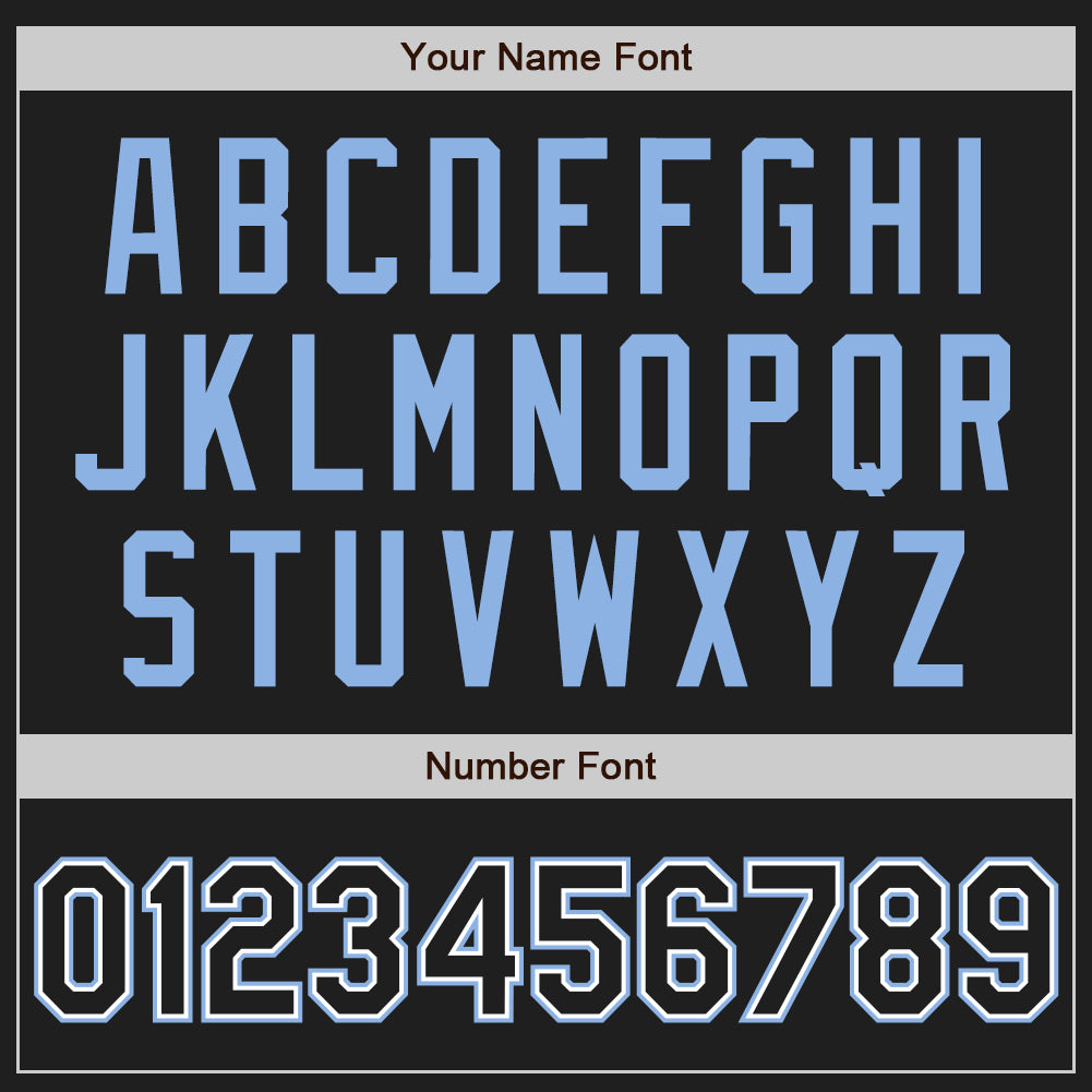 Personalized Black-White Baseball Jersey with Light Blue Pinstripes Personalized Black Light Blue Pinstripe Black-White Baseball