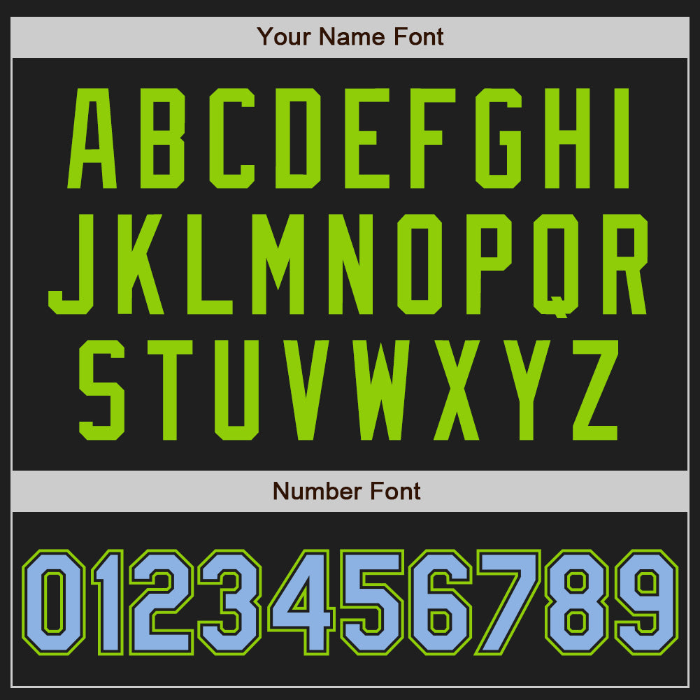 Personalized Black and Light Blue Neon Green Baseball Jersey with Pinstripes Personalized Black Light Blue Pinstripe Light