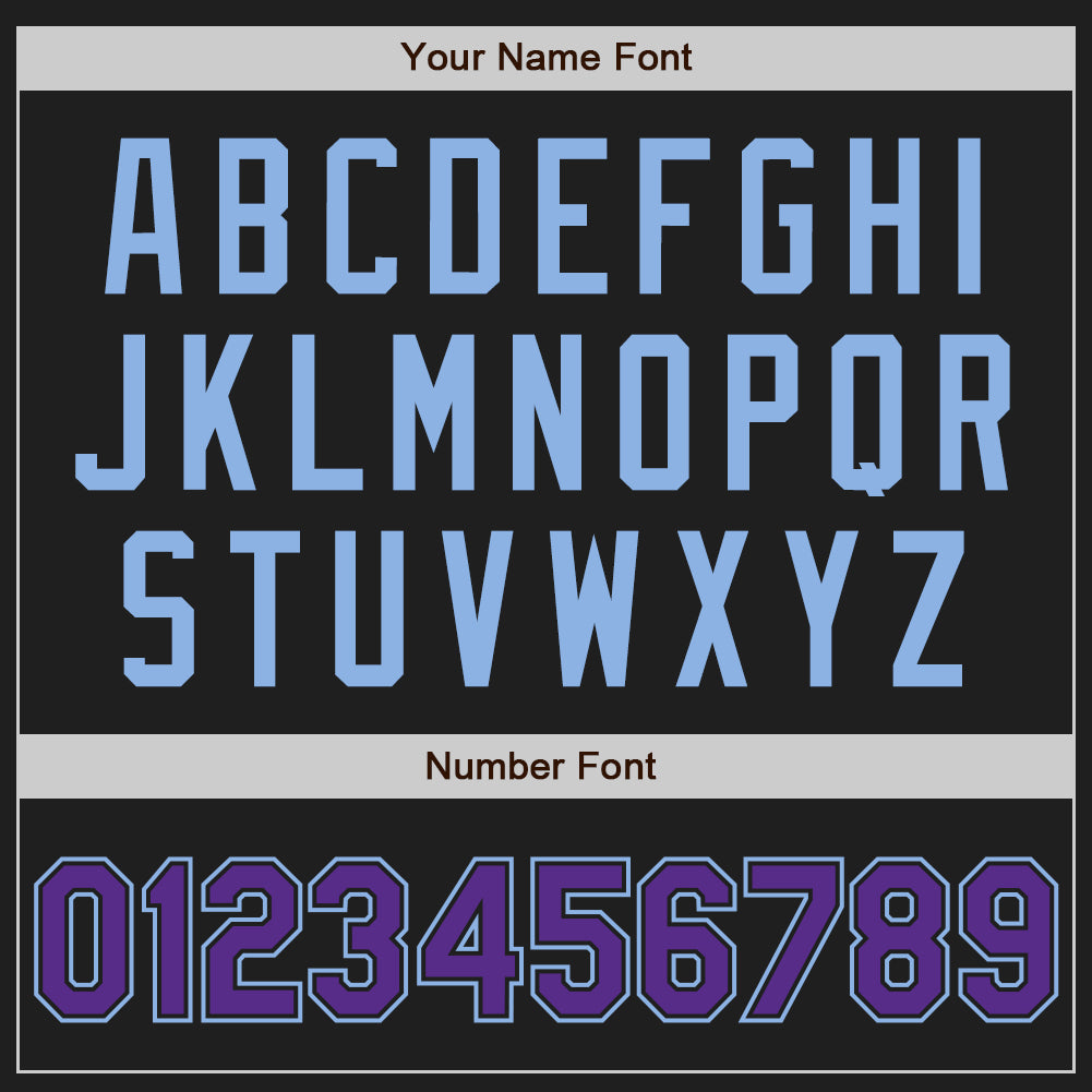 Personalized Unisex Purple Two-Button Softball Jersey – Black Light Blue Pinstripe Design Personalized Black Light Blue Pinstripe