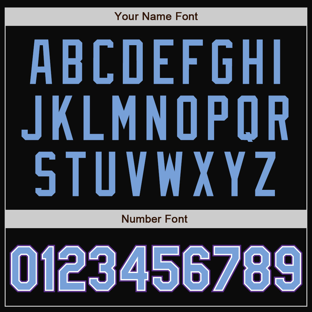 Personalized Two-Tone Black Light Blue-Purple Varsity Letterman Bomber Jacket Full-Snap Personalized Black Light Blue-Purple
