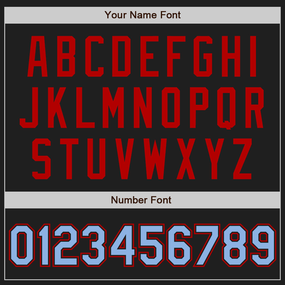 Personalized Black Light Blue Red Baseball Jersey with Raglan Sleeves Personalized Black Light Blue-Red Raglan Sleeves Baseball