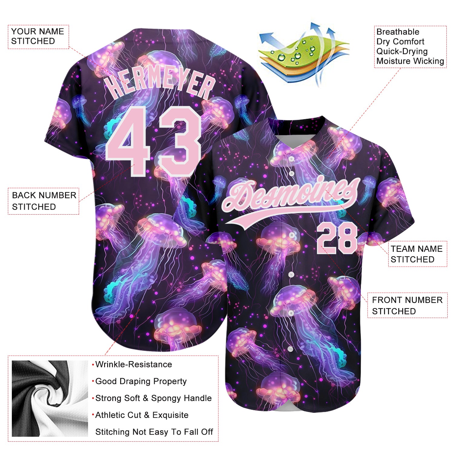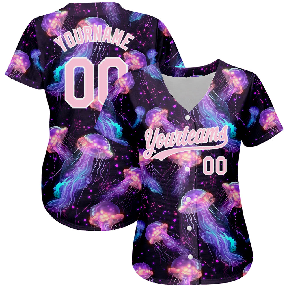 Personalized 3D Jellyfish Baseball Jersey – Black Light Pink and White Ocean Design Personalized Black Light Pink-White 3D