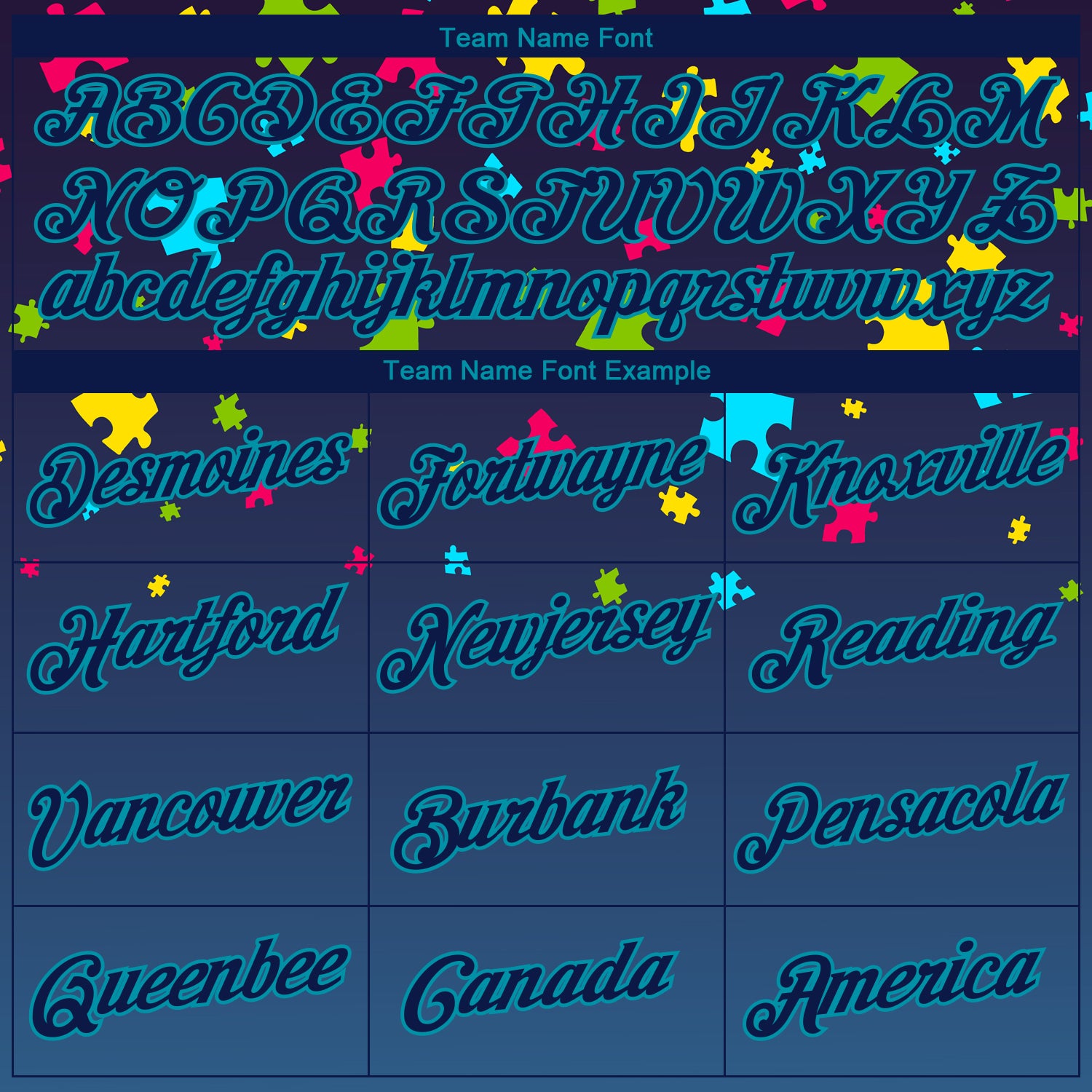 Personalized Black Navy-Teal 3D Pattern Design Autism Awareness Puzzle Pieces Authentic Basketball Jersey Team Custom Name and Number