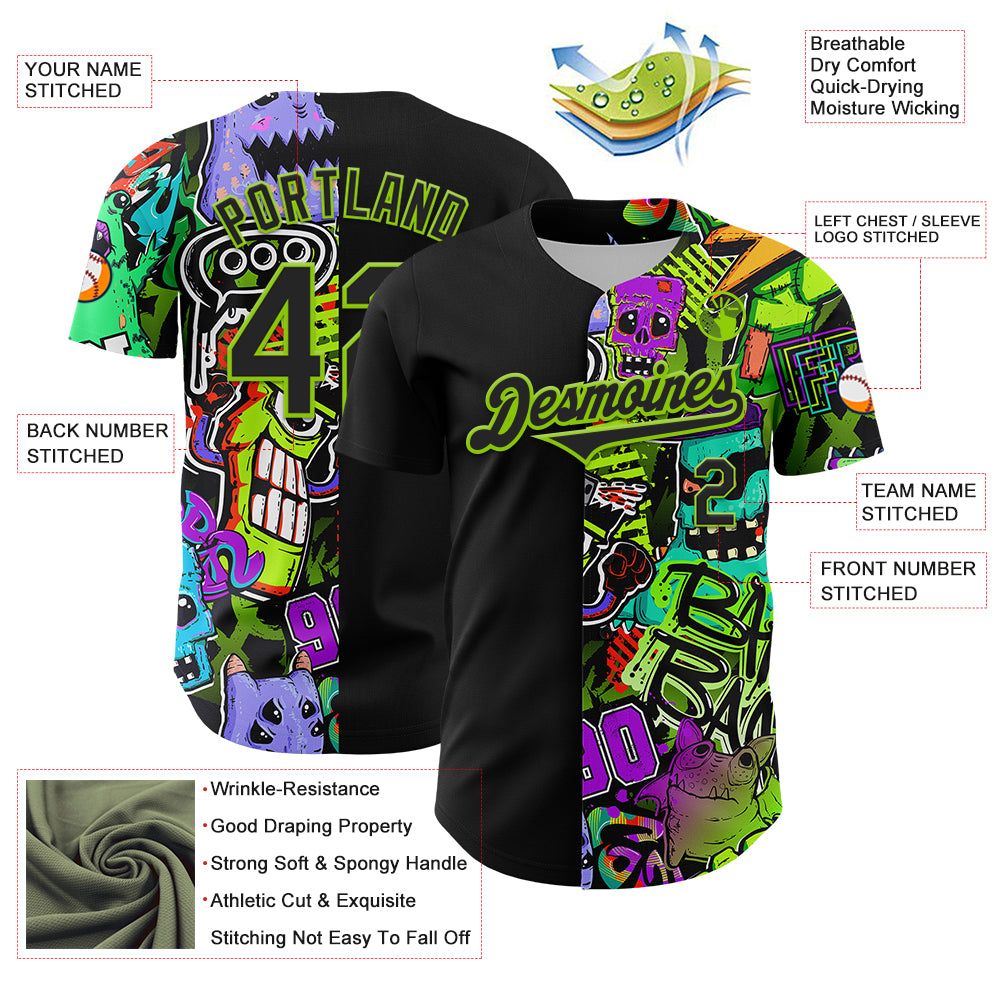 Personalized Black Neon Green 3D Rave Monster Baseball Jersey