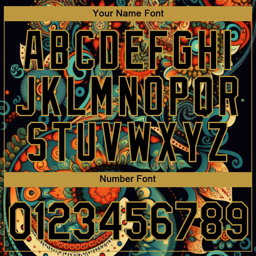 Personalized 3D Floral Design Performance T-Shirt in Black with Old Gold Accents Personalized Black Old Gold 3D Floral Design