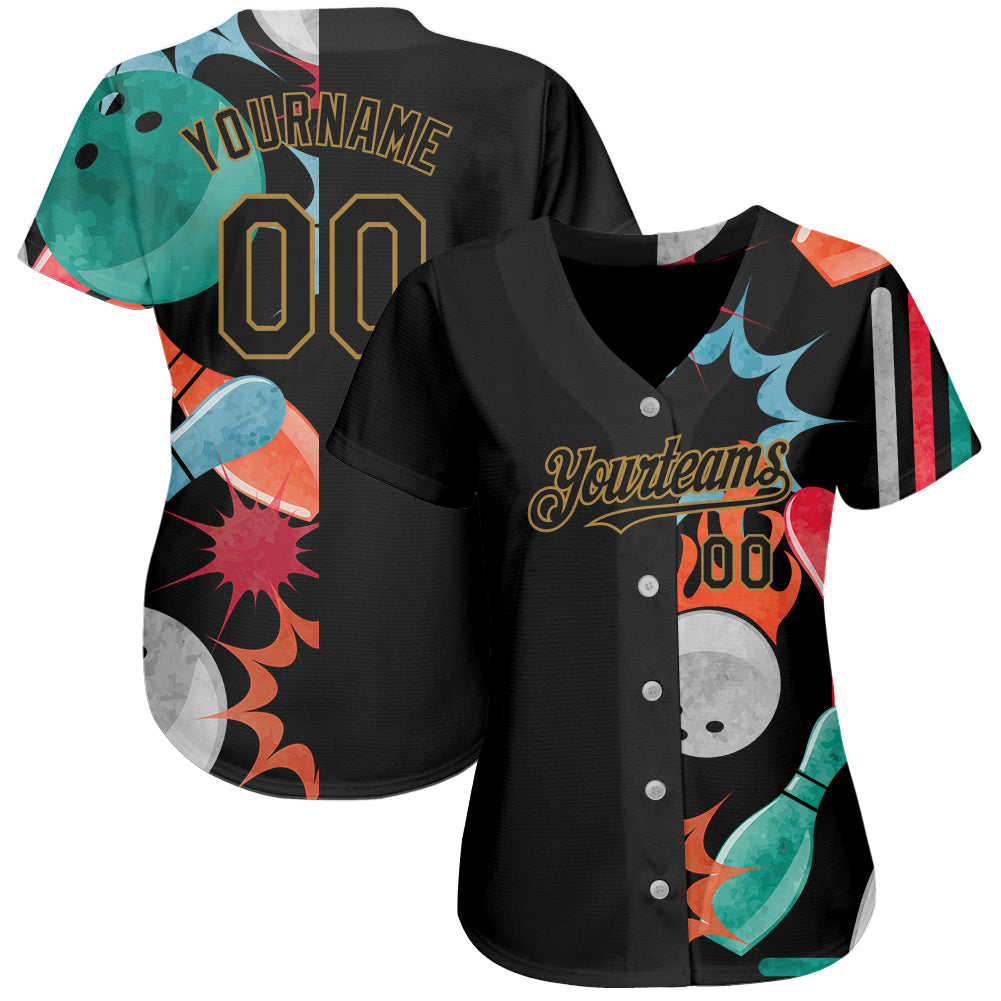 Personalized Black Old Gold 3D Pattern Design Bowling Authentic Baseball Jersey Team Custom Name and Number