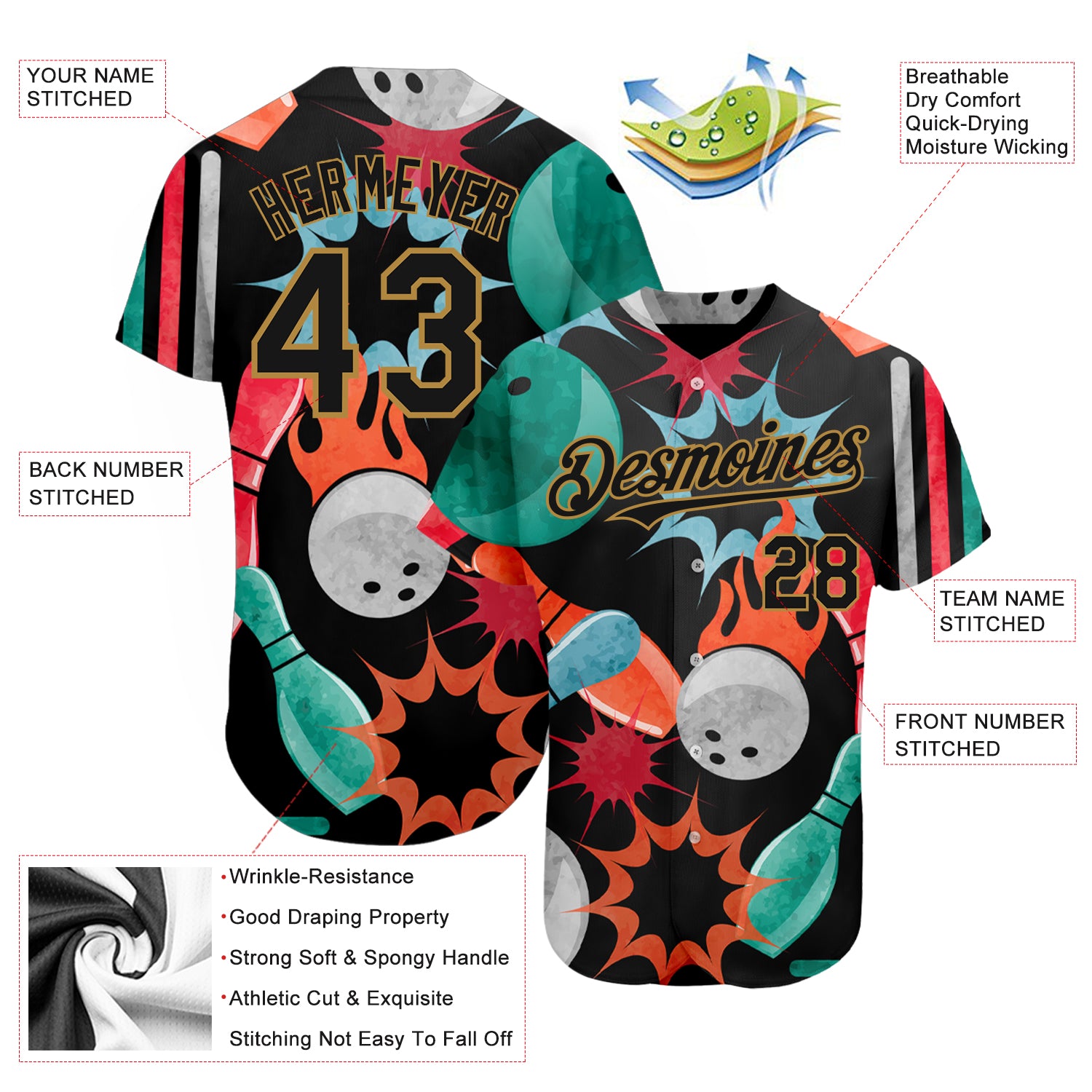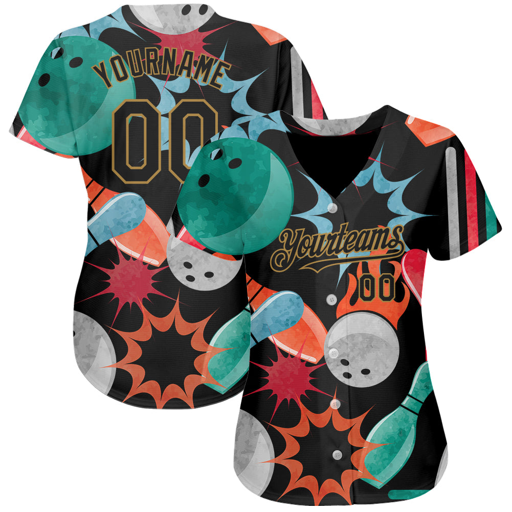 Personalized Black and Gold 3D Pattern Bowling Baseball Jersey – Authentic Design Personalized Black Old Gold 3D Pattern